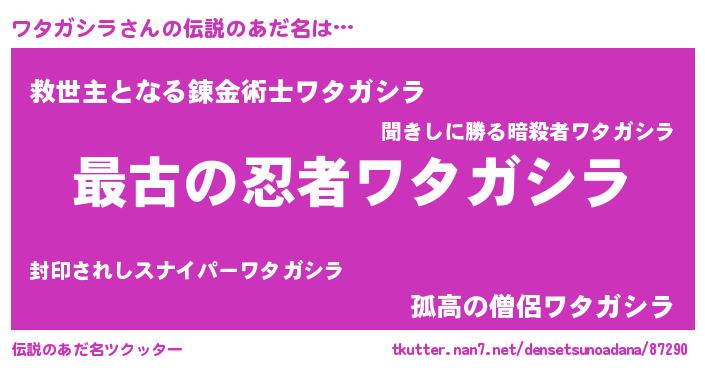 | ファンタジー風あだ名 | 『エターナルワタガシラー』『ゼワタトゥ』 |
