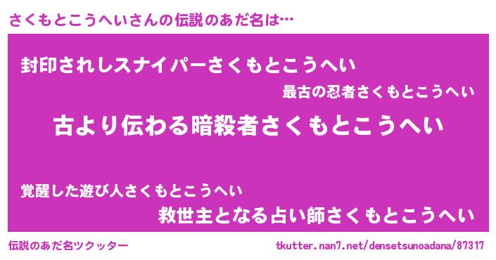 | 意味不明あだ名 | 『住所不定無職さくもとこうへい(50歳)』 |