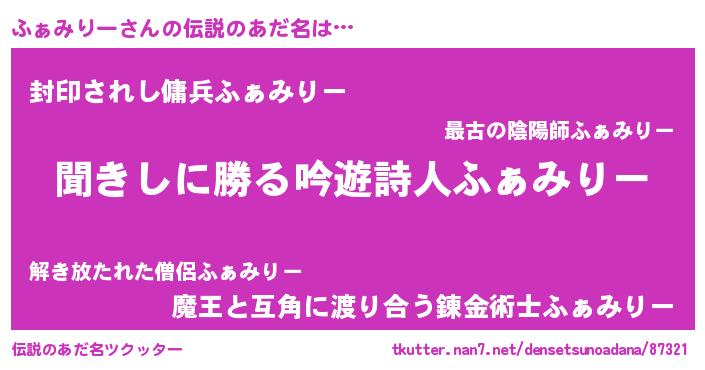 | ヘコむあだ名 | 『ふぁみりー(笑)』『ふぁにゅー』 |