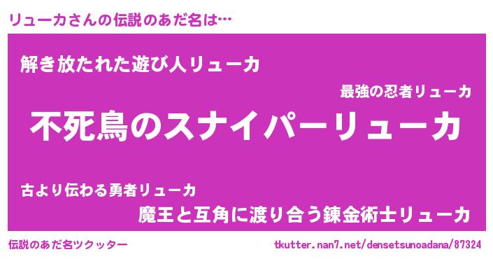 | 胡散臭い通販商品みたいなあだ名 | 『モテモテ間違いなし霊験あらたかなお札…その名も「リューカ」』 |