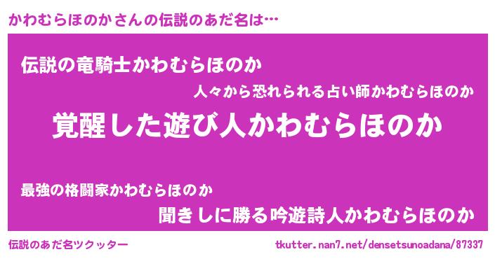 | 男性向けラノベタイトル風あだ名 | 『かわむらほのかの嫁は女の子じゃないと思った?』 |