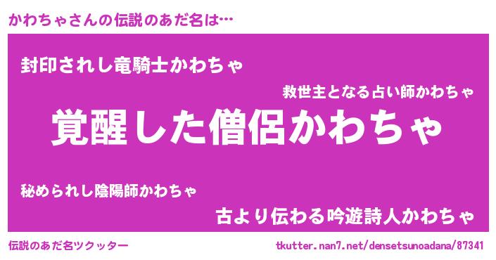 | 男性向けラノベタイトル風あだ名 | 『かわちゃの嫁は女の子じゃないと思った?』 |