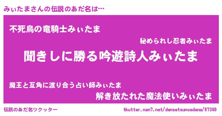 | ヒーロー風カッコイイあだ名 | 『ネオミィタマ』『スーパーミィタマ』 |
