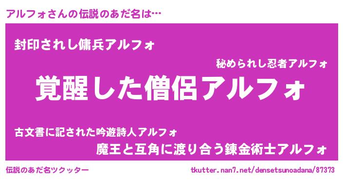 | ヒーロー風カッコイイあだ名 | 『最強戦士アルフォ』『炎刃騎士アル』 |