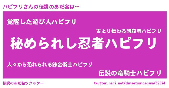 | ヒーロー風カッコイイあだ名 | 『仮面ハピダー』『ウルトラハピフリマン』 |