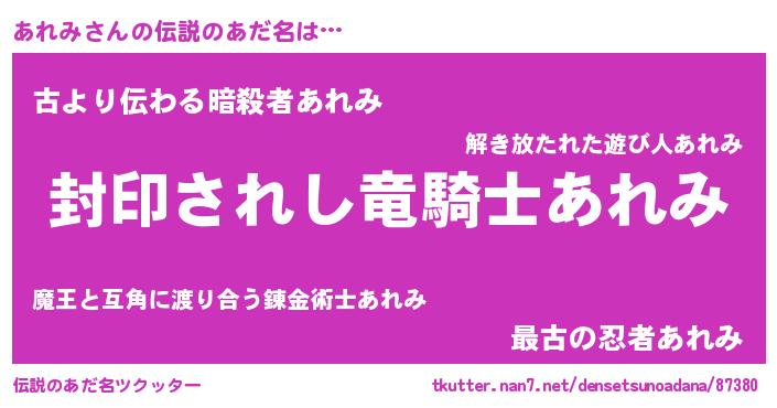 | 胡散臭い通販商品みたいなあだ名 | 『億万長者になれるブレスレット…その名も「あれみ」』 |