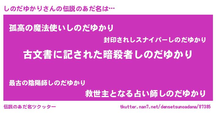 | 意味不明あだ名 | 『自称しのだゆかり』 |