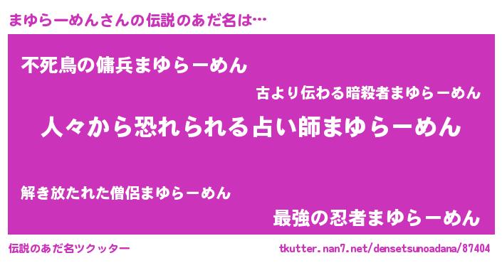| 胡散臭い通販商品みたいなあだ名 | 『100人中100人が認めたイリジウム磁石…その名も「まゆらーめん」』 |