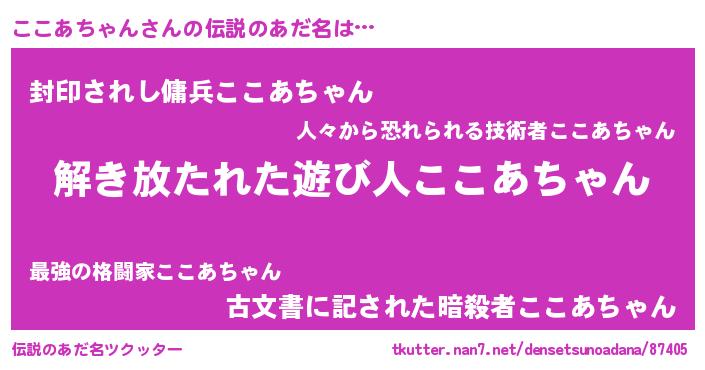 | 意味不明あだ名 | 『自称ここあちゃん』 |