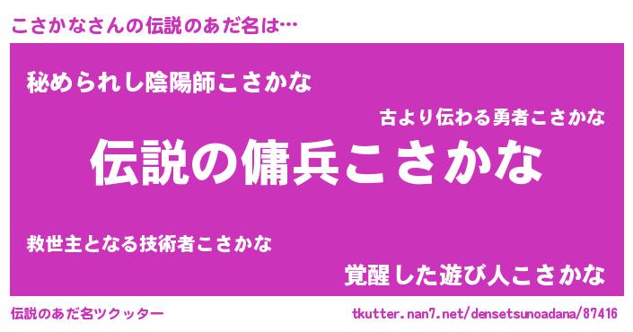 | 男性向けラノベタイトル風あだ名 | 『こさかなの憂鬱』『魔弾の王とこさかな』 |