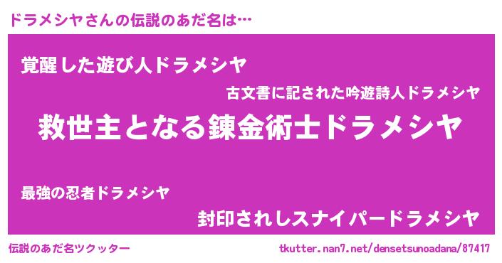 | 意味不明あだ名 | 『眠気覚ましガムドラメシヤ味』 |