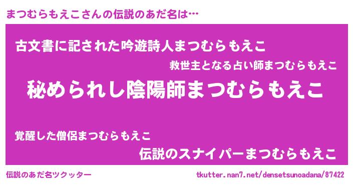 | 意味不明あだ名 | 『住所不定無職まつむらもえこ(89歳)』 |