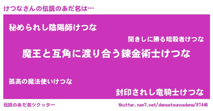 | ヒーロー風カッコイイあだ名 | 『友情の使者けつな』『究極戦士ケツナ』 |