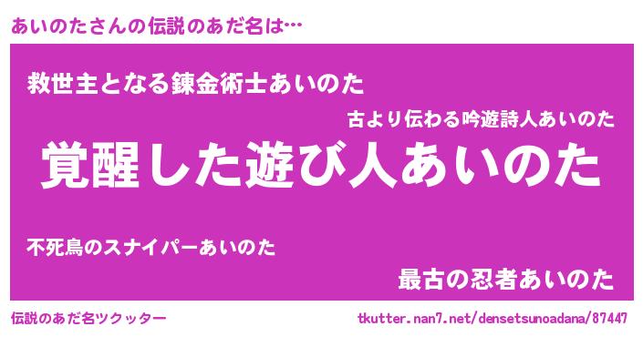 | 意味不明あだ名 | 『とにかく怪しいあいのた』 |