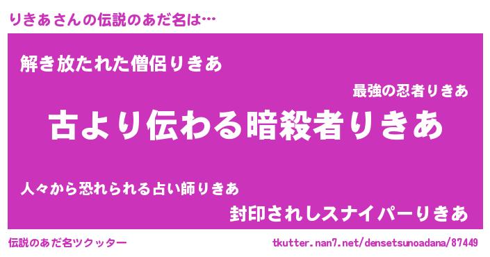 | ヘコむあだ名 | 『りきあ(爆)』『りきっ子』 |