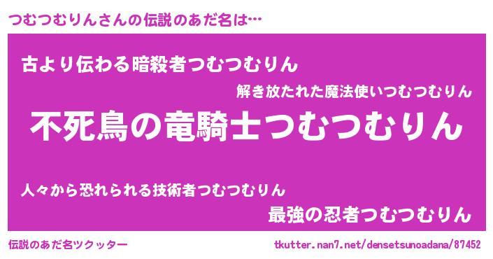 | 女子向けラノベタイトル風あだ名 | 『つむつむりん姫と円卓の騎士』 |