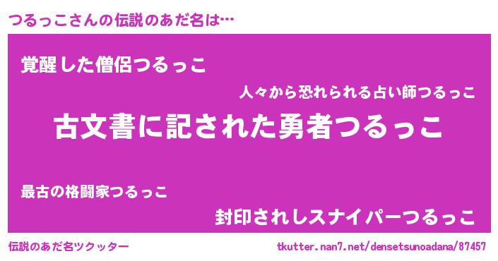 | ヒーロー風カッコイイあだ名 | 『ネオツルッコ』『仮面ツルダー』 |