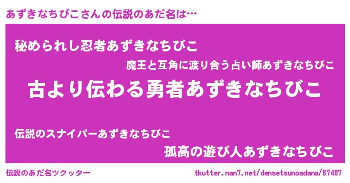 | 意味不明あだ名 | 『永久保存あずきなちびこ』 |