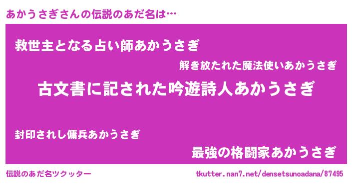 | 意味不明あだ名 | 『住所不定無職あかうさぎ(2歳)』 |