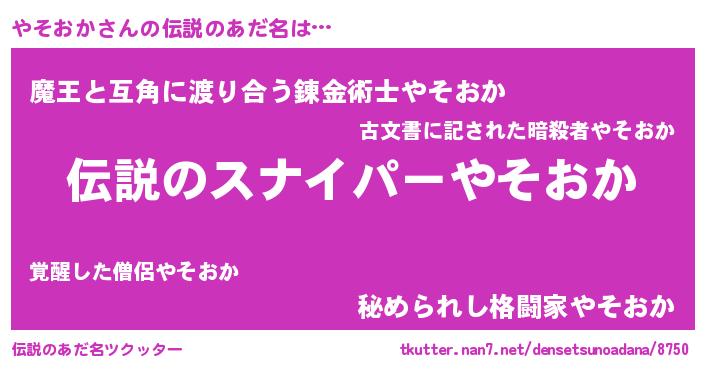 | ヒーロー風カッコイイあだ名 | 『スーパーヤソオカ』『仮面ヤソダー』 |
