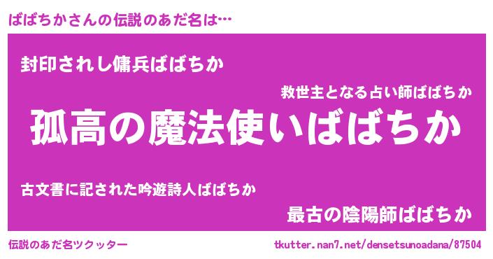 | 胡散臭い通販商品みたいなあだ名 | 『信頼と実績のサプリメント…その名も「ばばちか」』 |