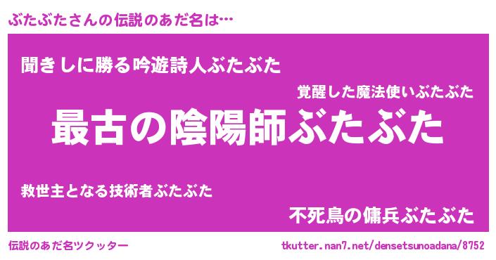 | ファンタジー風あだ名 | 『エターナルブタブター』『ブタフェル』 |