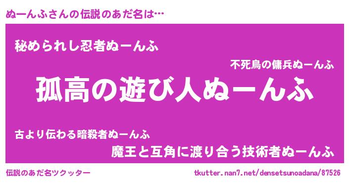| ヒーロー風カッコイイあだ名 | 『黄金騎士ヌー』『ウルトラぬーんふマン』 |