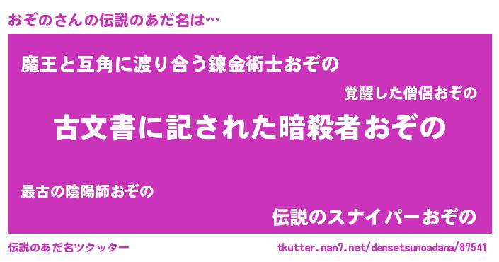 | ヒーロー風カッコイイあだ名 | 『ネオオゾノ』『愛の使者おぞの』 |