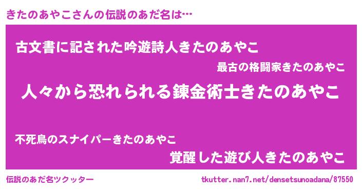 | ヒーロー風カッコイイあだ名 | 『正義の使者きたのあやこ』 |