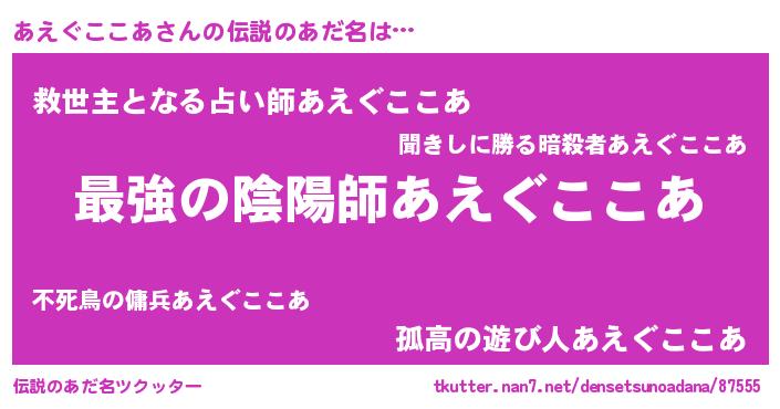 | 意味不明あだ名 | 『自称あえぐここあ』 |