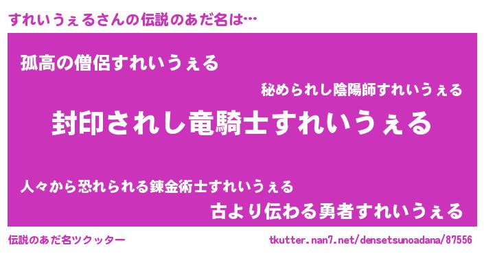 | 胡散臭い通販商品みたいなあだ名 | 『億万長者になれるブレスレット…その名も「すれいうぇる」』 |
