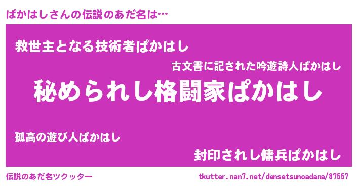 | 男性向けラノベタイトル風あだ名 | 『やはりぱかはしの青春ラブコメはまちがっている 』 |