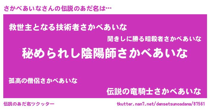 | ファンタジー風あだ名 | 『エターナルサカベアイナー』 |