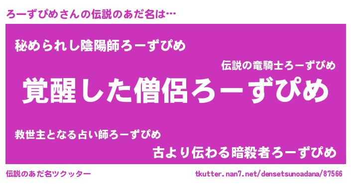 | 女子向けラノベタイトル風あだ名 | 『ろーずぴめ様がみてる』 |