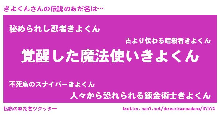 | 男性向けラノベタイトル風あだ名 | 『きよくん~年齢イコール彼女いない歴の魔法使い~』 |