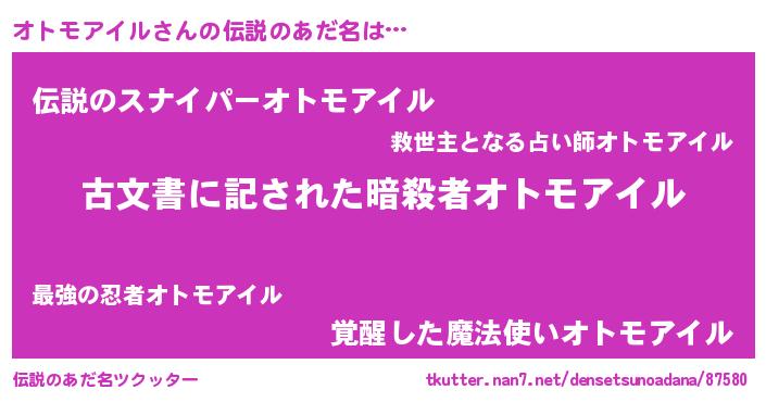 | ヒーロー風カッコイイあだ名 | 『ネオオトモアイル』『炎刃騎士オト』 |