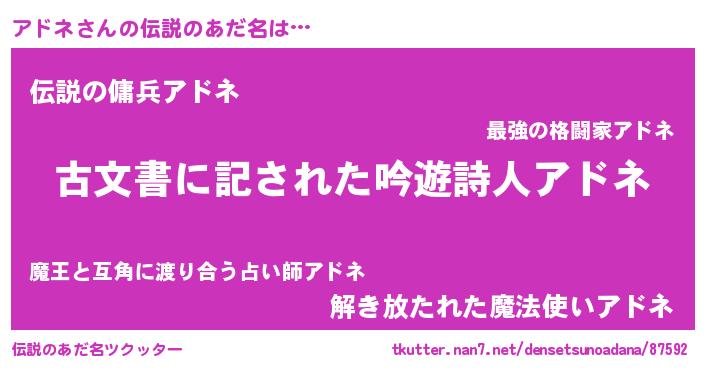 | ヘコむあだ名 | 『アドネ(小並感)』『アドにゅー』 |
