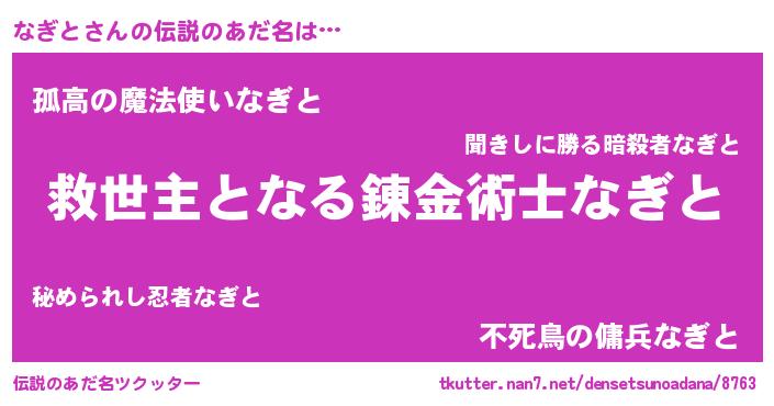 | 意味不明あだ名 | 『ヨモギ科なぎと属』『自称なぎと』 |