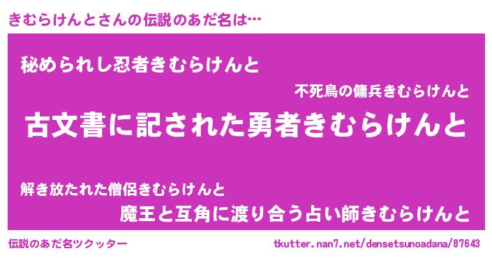 | 意味不明あだ名 | 『永久保存きむらけんと』 |