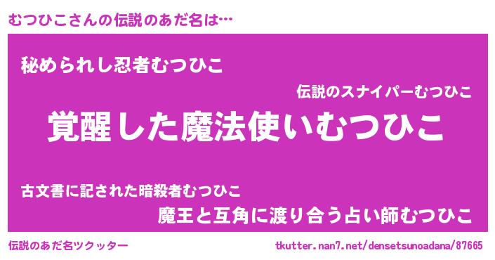 | 男性向けラノベタイトル風あだ名 | 『むつひこの嫁は女の子じゃないと思った?』 |