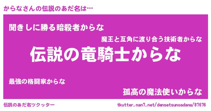 | ヒーロー風カッコイイあだ名 | 『ウルトラ戦士カラナ』『スーパーカラナ』 |