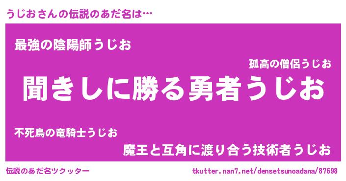 | 胡散臭い通販商品みたいなあだ名 | 『絶対に幸福をもたらす水素水…その名も「うじお」』 |