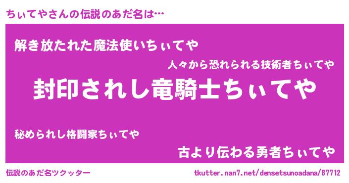 | ヒーロー風カッコイイあだ名 | 『スーパーチィテヤ』『仮面チィダー』 |