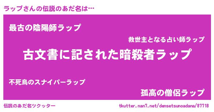 | ヒーロー風カッコイイあだ名 | 『仮面ラッダー』『ネオラップ』 |