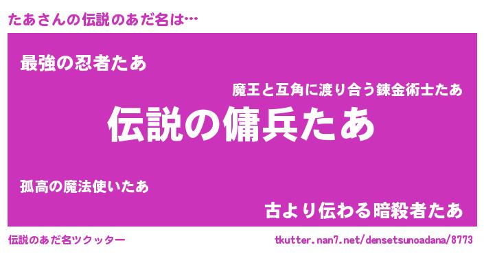 | 胡散臭い通販商品みたいなあだ名 | 『必ず成功する水晶球…その名も「たあ」』 |