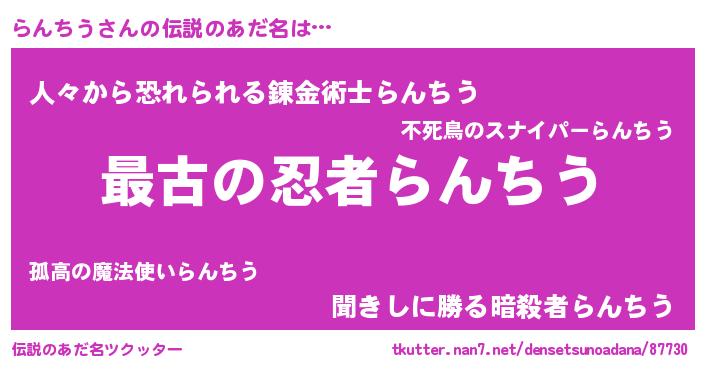 | 意味不明あだ名 | 『らんちうフォーエバー』『自称らんちう』 |