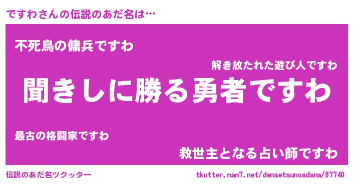 | ヒーロー風カッコイイあだ名 | 『仮面デスダー』『ネオデスワ』 |