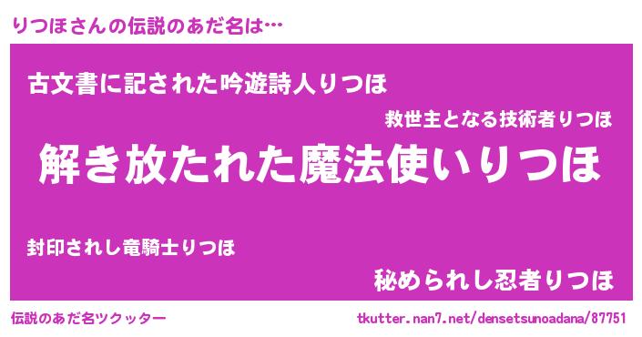 | ヘコむあだ名 | 『りつ太郎』『りつほ(笑)』 |