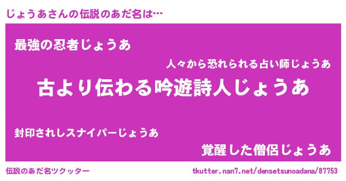 | 意味不明あだ名 | 『永久保存じょうあ』『自称じょうあ』 |