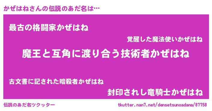 | 欧米人風あだ名 | 『ダニエルかぜはね』『マイケルかぜはね』 |